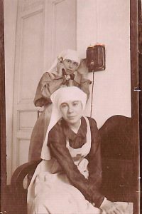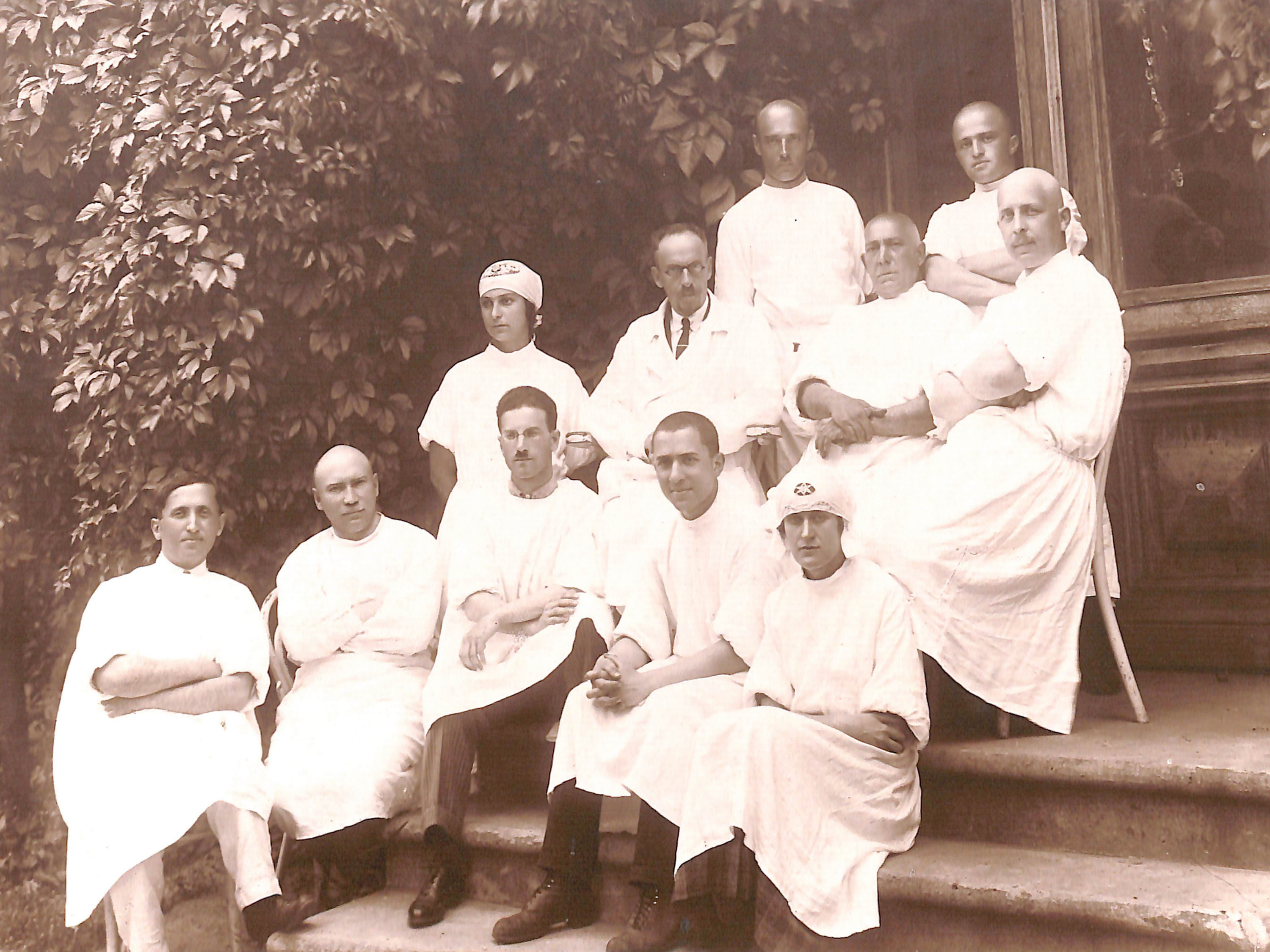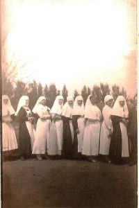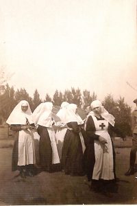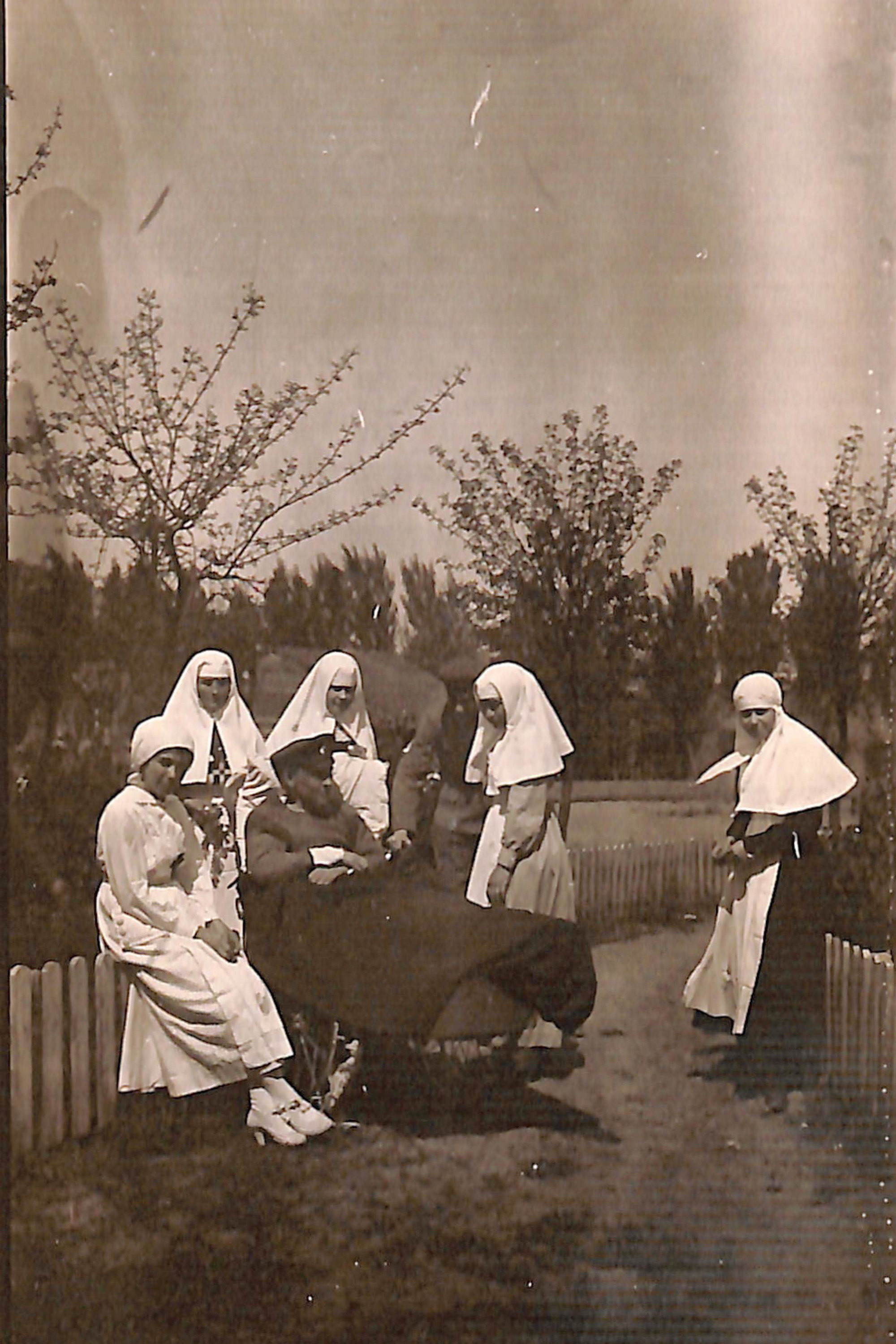 - Сестри милосердя на подвірї лукрні. госпіталь періоду 1-ї світової війни